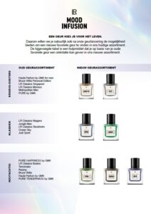 WHAT'S YOUR MOOD TODAY? De nieuwe geurlijnen van LR met daarin diverse nieuwe geuren. Wil je weten welke nieuwe geur past bij de geur die je hiervoor altijd had? Zoek je oude geur hieronder op, en vergelijk de geuren!