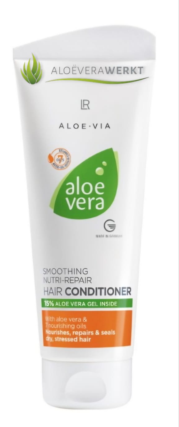 Aloë Vera Nutri-Repair Conditioner voedt en herstelt het haar van binnenuit. Voedende actieve ingrediënten maken het haar glad en sluiten het haaroppervlak weer af.