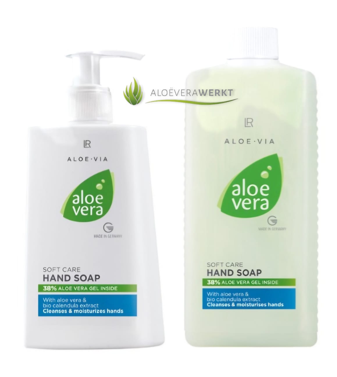 De Aloë Vera Handzeep en navulverpakking is een milde crèmezeep voor uw handen. De zeep hydrateert met 38 % Aloë Vera en Calendula-extract.